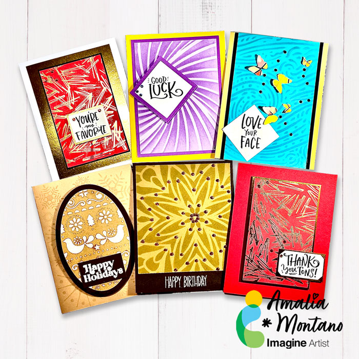 Hi! This is Amalia with Imagine crafts. In this video, I am using the new VersaFine Clair colors and stencils to create backgrounds that will turn into beautiful cards. The VersaFine Clair inks are highly pigmented and stamp perfectly the first time. They are vibrant and great for use with watercolor as they won’t bleed when wet. I love color and use the new colors with coordinating card stock from my stash for a tone-on-tone look. I hope you get inspired with the new colors and what I am able to create with them.