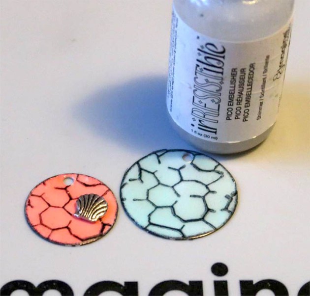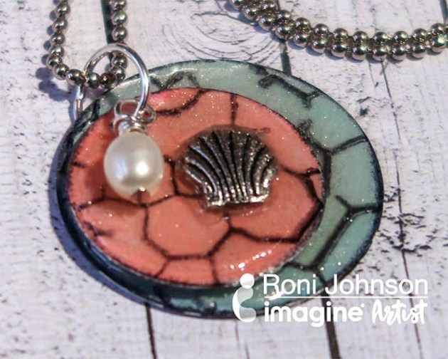- Cover pendant with a stencil and apply Creative Artist Medium – Clear.