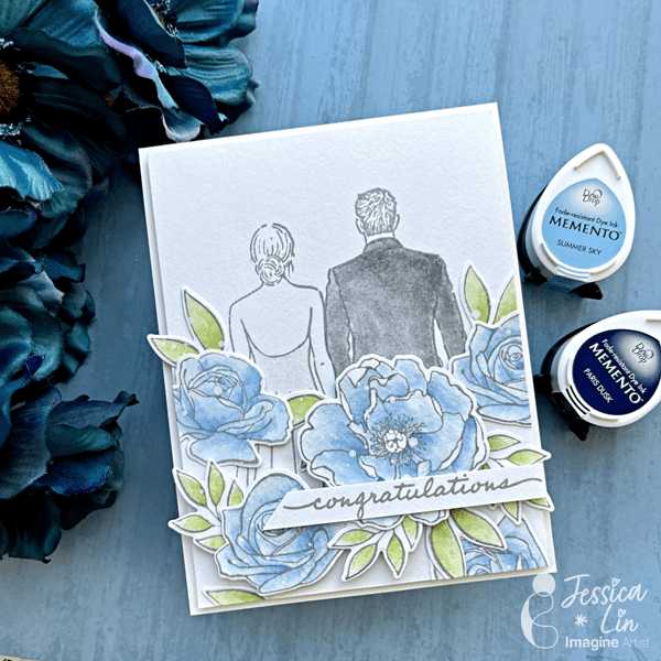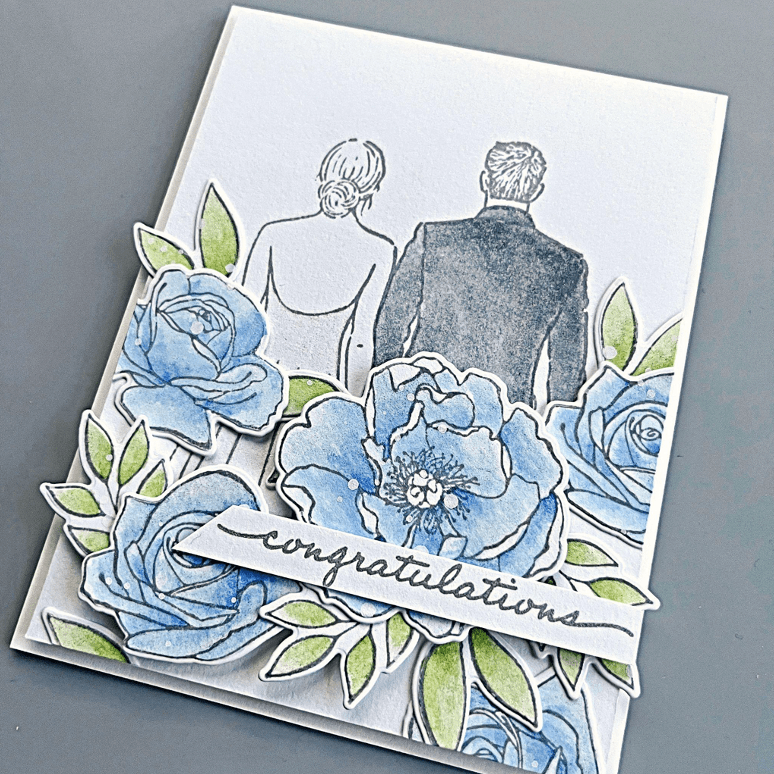 Hi everyone! It’s Jessica here. I am so excited to share a wedding card idea with you today. We will be creating a romantic wedding scene by watercoloring some images. If you like adding shimmer and sparkles to your card, be sure to keep reading to find out how you can watercolor with the Sheer Shimmer Sprays!