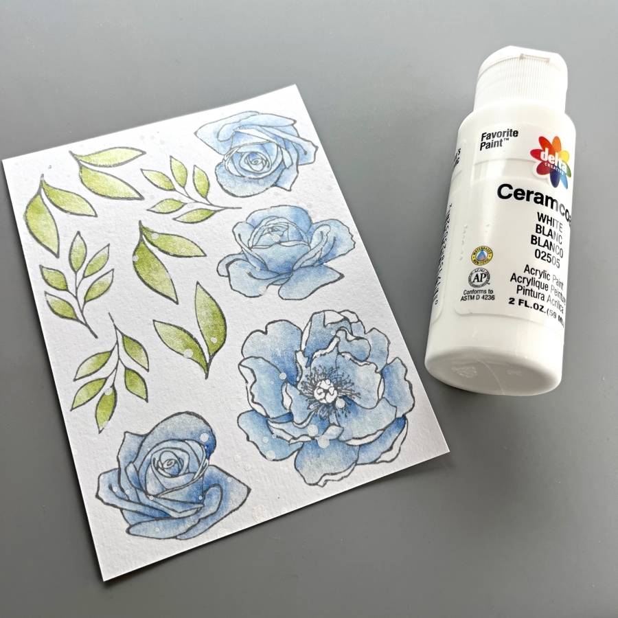 I also splattered some white acrylic paint droplets to add additional textures to the colored images.