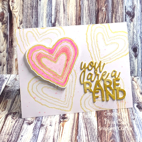 “For this Valentines Card design, I used Delicata Golden Glitz, Iridescent Embossing Powder, Fireworks in Angel Pink and Rose Bud, Ink Potion No. 9, Concord & 9th Geode Stamp Set, Geode Die Set.”