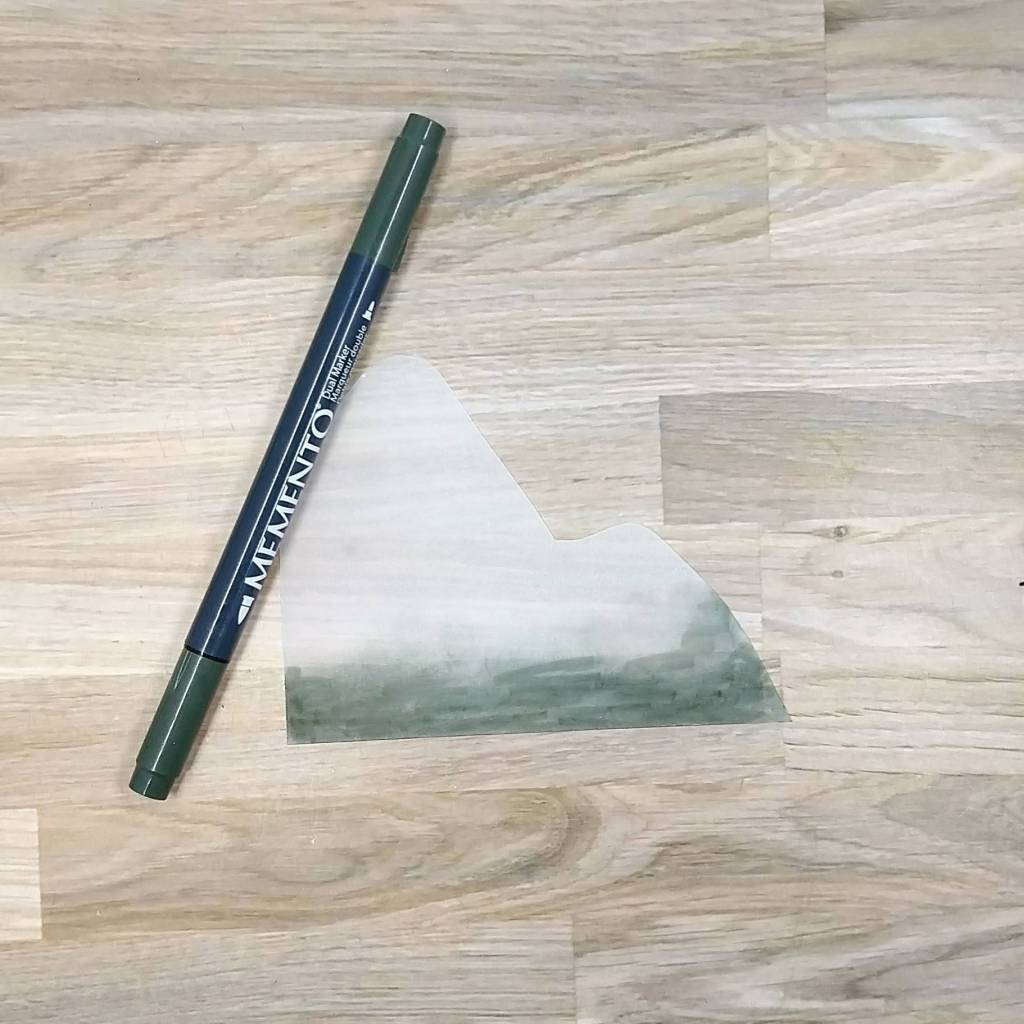 Use the brush tip of the Pear Tart Memento Marker to draw the layer of pine needle leaves with outward flicking motion on each branch.