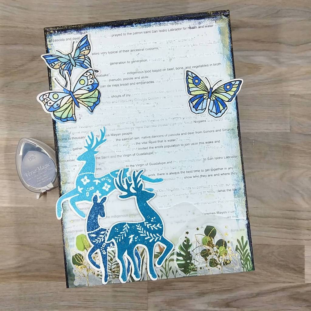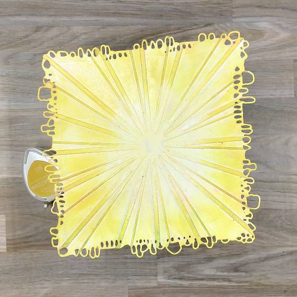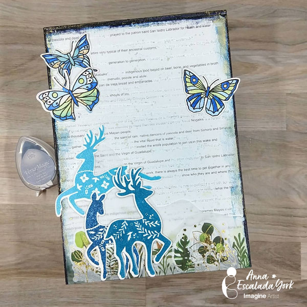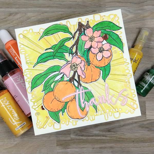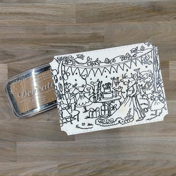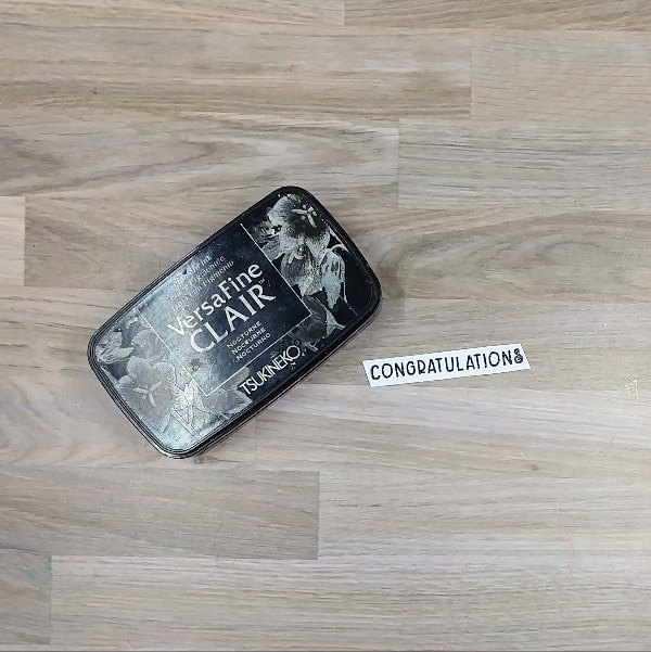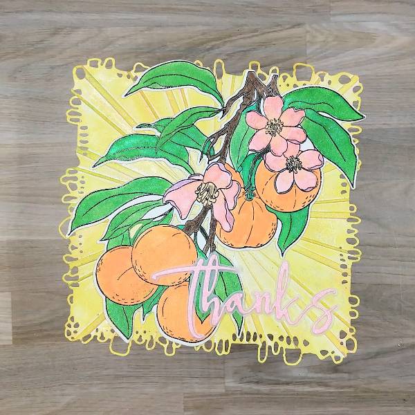 On the dried painted surface, stamp the sentiment using StazON Opaque – Cotton White ink.