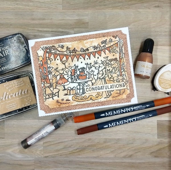 - Memento Markers (Tuxedo Black, Rich Cocoa, Cottage Ivy, Pear Tart, Lady Bug)