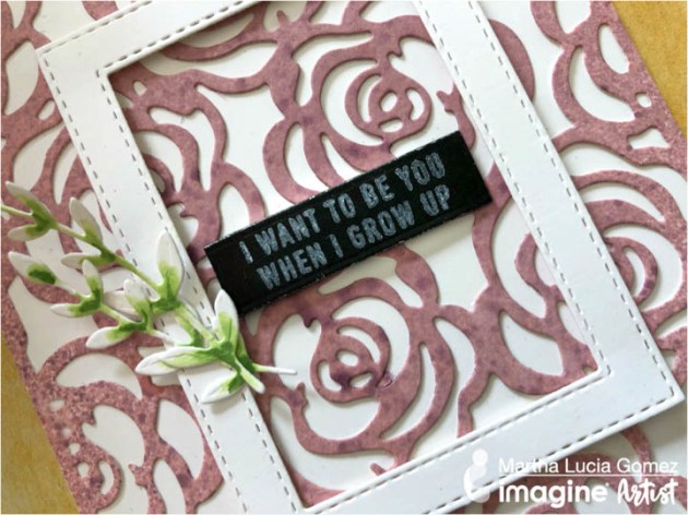 Center Lattice Flourish Gateway die below the sentiment and trim to fit. Adhere with On Point glue.