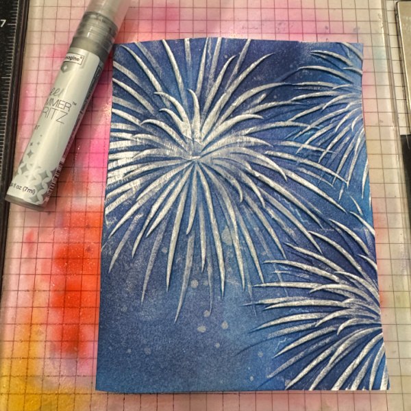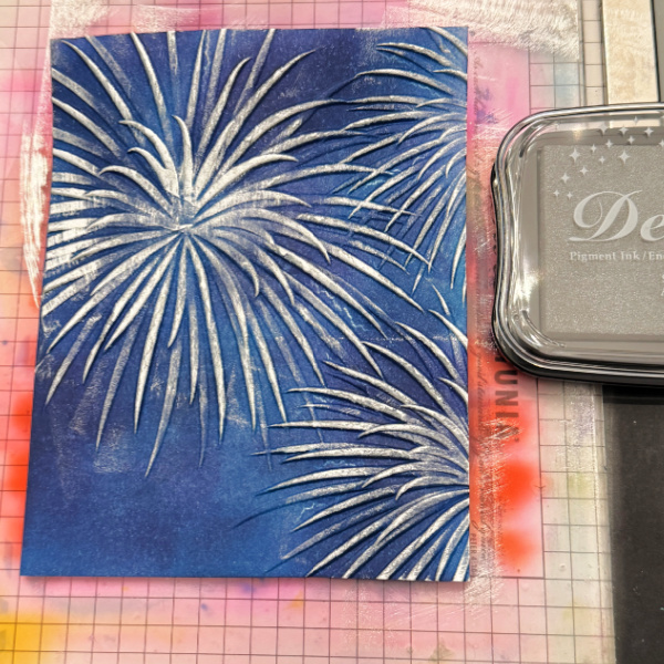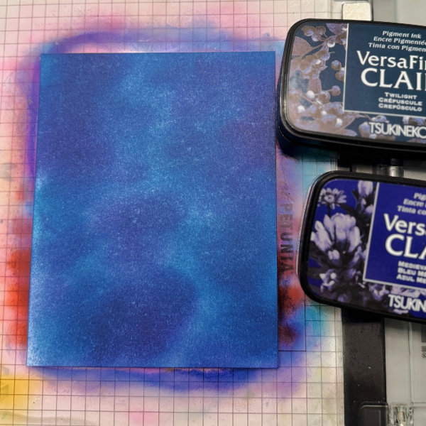 Blend the two dark inks together on a panel cut to 4x 5.25 to give the appearance of a night sky.