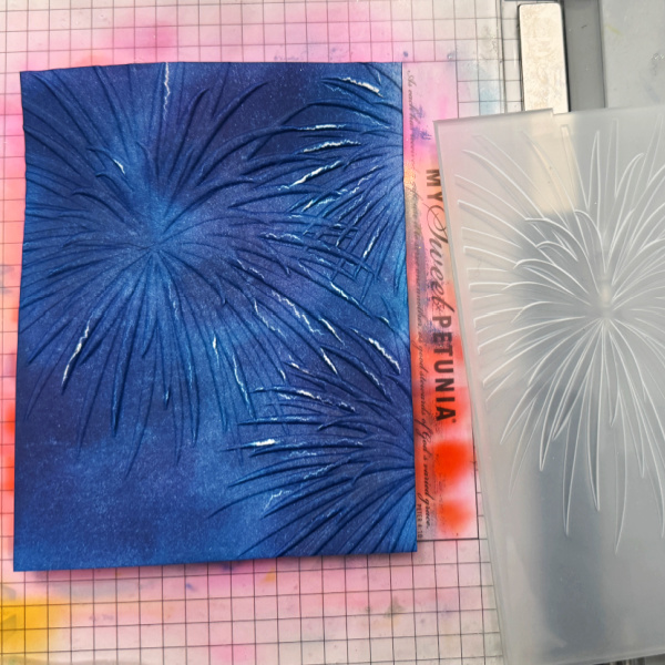 Run the blended panel through the die cutting machine with a 3D embossing folder.