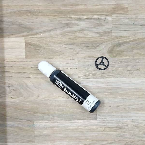 Add a dab of black Amplify! onto a brass metal gear and heat with a tool. Because I heated the Amplify!, it puffed out and made Amplify! gritty and puffy, which worked well for the jar’s gritty look.
