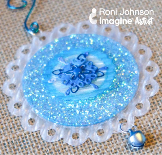 Squeeze a few drops of the Shimmer IrRESISTible Pico Embellisher, then sponge. This gives the bottle a slight shimmer. If not adding the Shimmer brush on a final layer of GlazeOn. Allow the layer to completely dry.