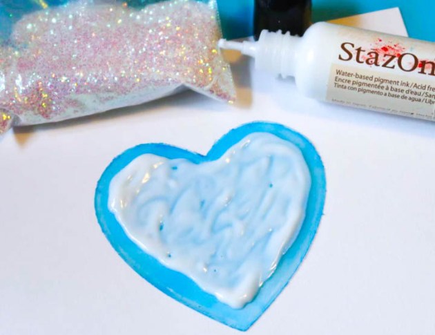 Today the idea of message in a bottle is more of fun romantic notion, thanks to literature and Hollywood movies. Show some love with this heart shaped glass bottle containing a custom stamped message, on a ribbon, using StazOn ink. Embellish the bottle with StazOn Studio Glaze and other adornments.