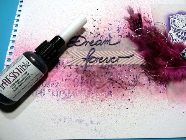 Using the kraft cardstock as the background, you have the option to play with more color choices on the embossing powder or the dyed flowers with the Fireworks! Simmery Craft Sprays.