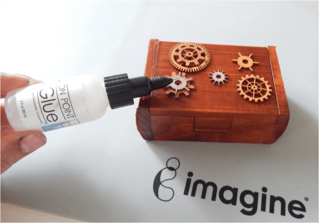 Use On-Point Glue to adhere the inked cog atop the other one.