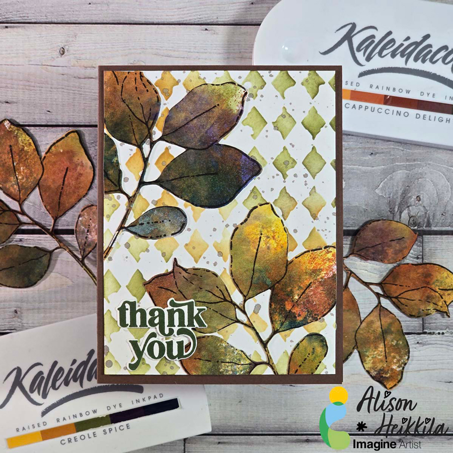 I used to be intimidated by the idea of multimedia cards, but all they are cards that have different types of products. This card features stamping, watercoloring with sprays and Amplify! Ink, and embossing.