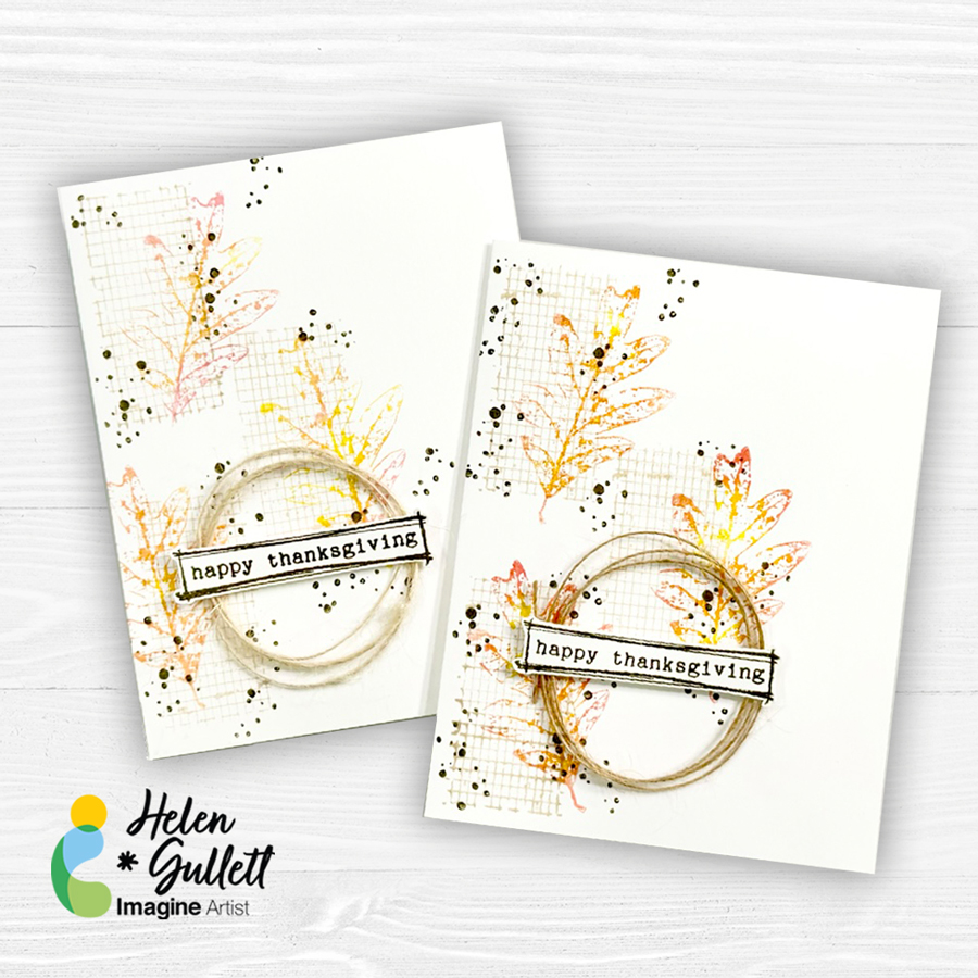 Here’s a quick and easy Thanksgiving card using a beautiful pumpkin stencil, Memento Dew Drop Inks, and a sticker!
