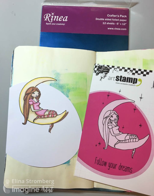 Position the smallest panel into the positioning tool again using the grid as a guide for placement. Ink the stamp with Fantasia VersaFine Clair ink and stamp the image onto the third and last panel.