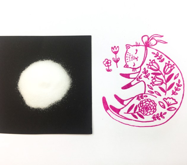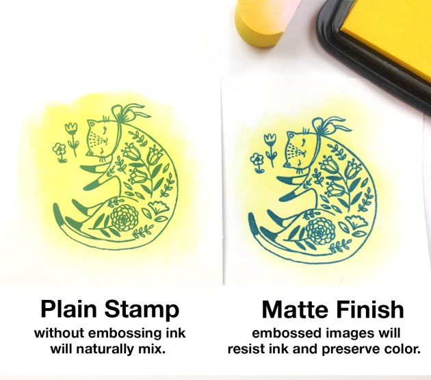 Sprinkle Black Embossing Powder on to the ladybugs, shake off the excess, and heat set.