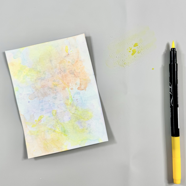 Scribble some of the Lemon Yellow Fabrico Marker on the craft mat and then spray it lightly with some water.