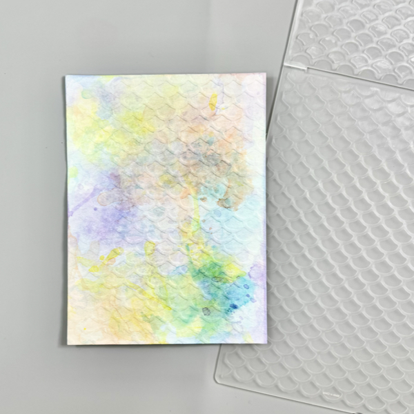 Once the watercolored panel dried well, put it inside the embossing folder, and then run it through the machine.