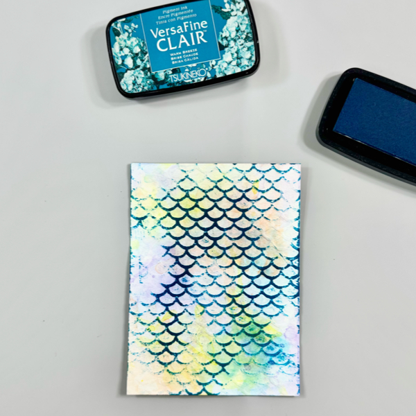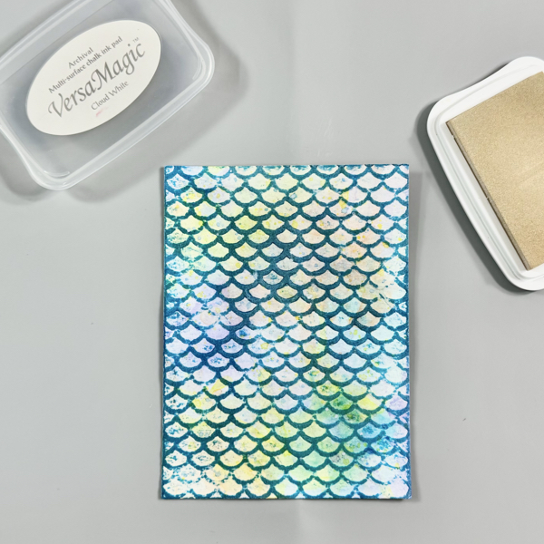 To tone down the bright color, swipe some of the VersMagic Cloud White ink on the panel.