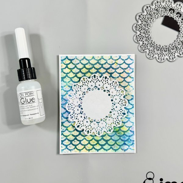 Cut a piece of white paper (copy paper works great) with the Delicate Doily die to create your own doily paper mat.