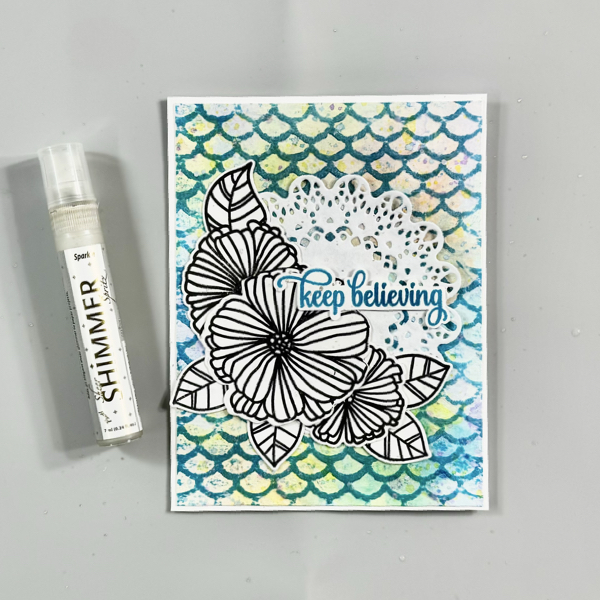 Add more shimmer to the card by spraying and splatting some of the Sheer Shimmer Spark Spray.