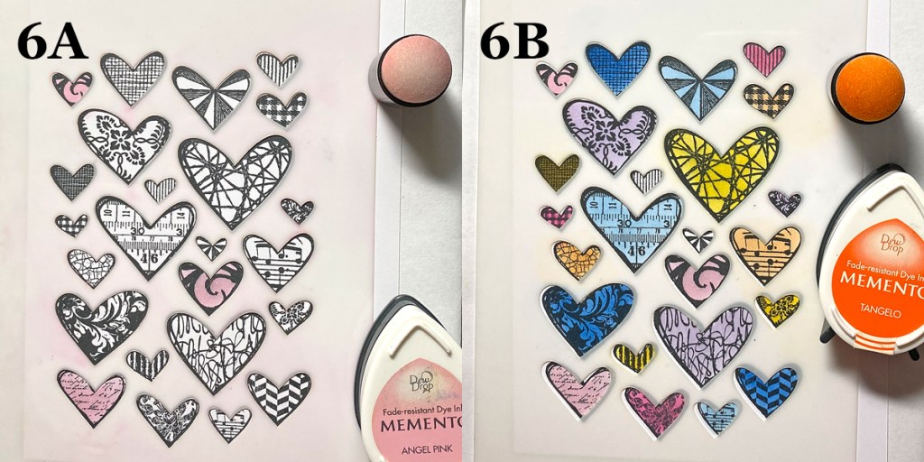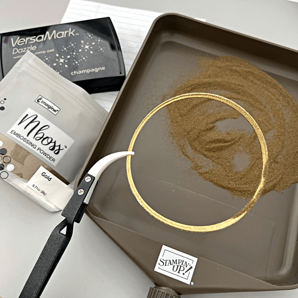 I stamped the coordinating floral stamp from Stampin’ Up’s Floral Phrases stamp set. I inked the stamp lightly with Brilliance Mediterranean Blue ink pad so that the shading details of the stamp could be captured.