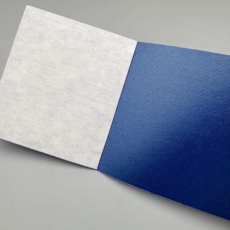 Peel off the Stick-It adhesive backing and adhere it to a piece of navy cardstock. Burnish the die cut area with a bone folder to ensure the two pieces of cardstock are fully stuck together.