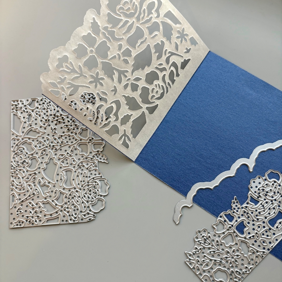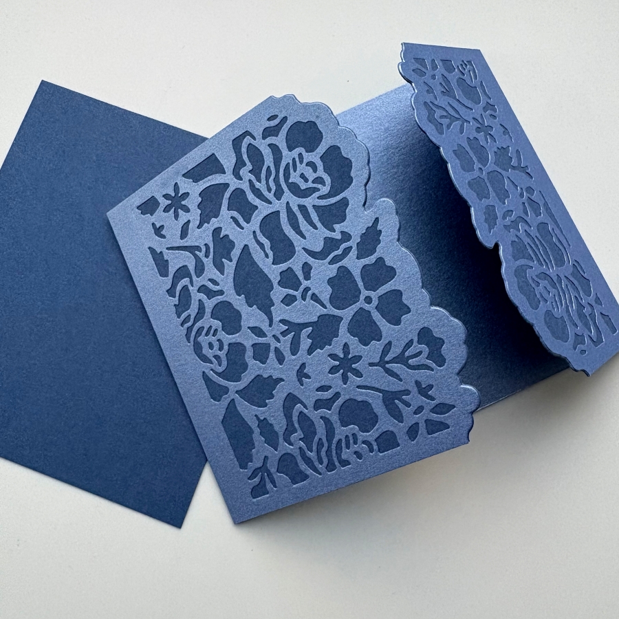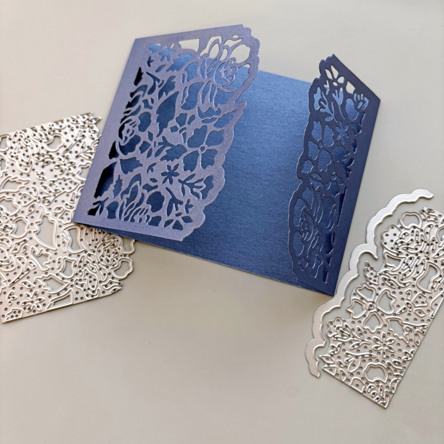 Die cut the left and right flaps with Stampin’ Up’s Detailed Floral dies. This would create beautiful card openings with delicate floral designs.