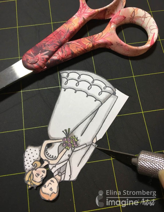 Cut out the image using scissors. A craft knife will help in cutting out smaller details.