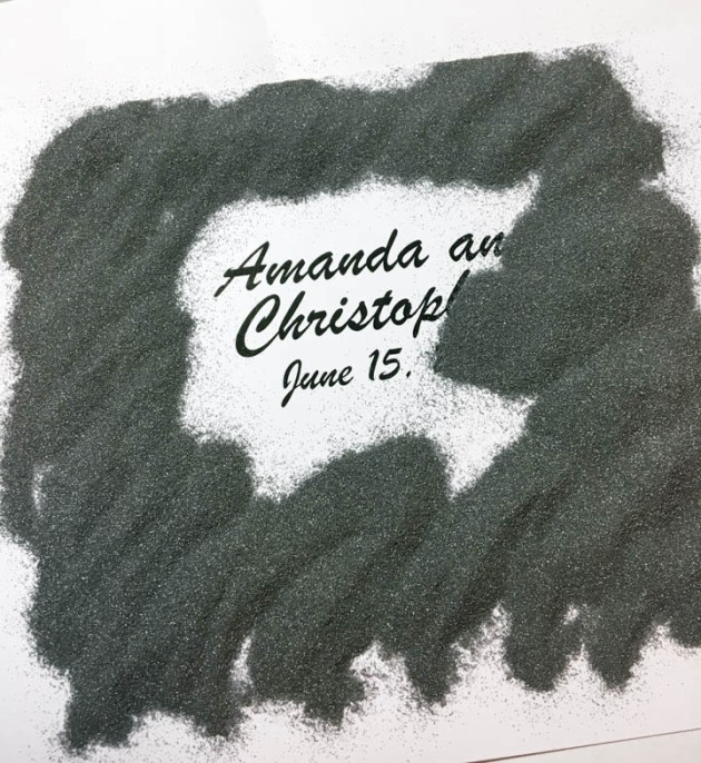 If the powder is sticking to the invitation text remove the powder with a clean brush. Heat set the powder with a heating tool.