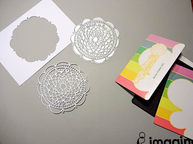 Die-cut a doily circle with the Waffle flower die. Waffle Flower dies work with any brand of machine such as Spellbinders or Sizzix.